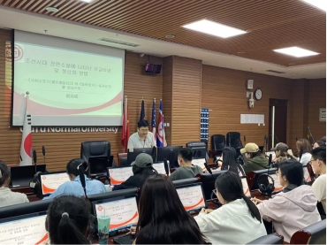 讲座伊始,赵老师以朝鲜王朝儒学思想体系为切入点,系统梳理了《谢氏南征记》与《乐亭记》的创作背景与文学史定位。通过文本细读与历史语境还原,着重解析了儒家核心理念在叙事结构中的艺术化呈现,为听众构建起儒家伦理与文学创作的互动框架。
