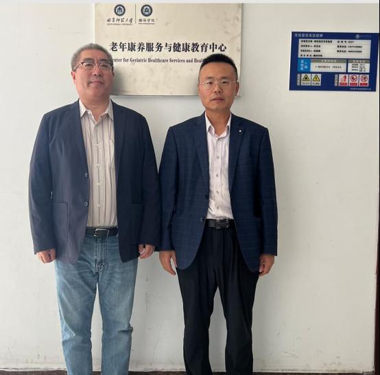 考察期间武宜金老师陪同张广善董事长一行考察了曲阜师范大学老年康养服务与健康教育中心。