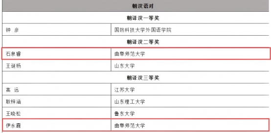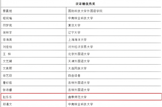 10月20日,第三十七届韩素音国际翻译大赛获奖名单正式公布,翻译学子在大赛中喜获佳绩。石泉睿(指导教师:周磊)荣获朝译汉二等奖,伊永霞(指导教师:吴纯)荣获朝译汉三等奖,赵乐乐、荣王凤霞与王翠玉分别荣获汉译朝、汉译英优秀奖。